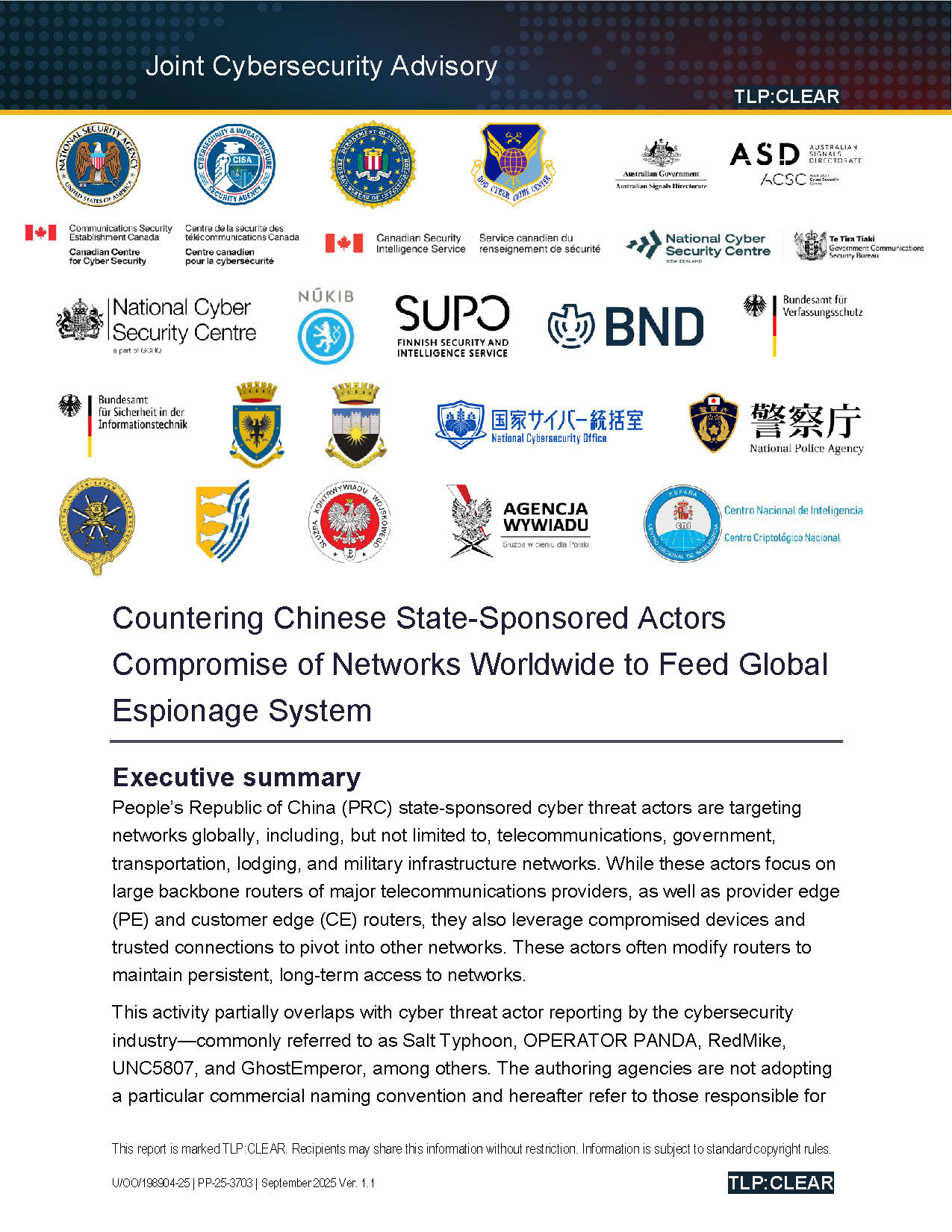 Countering Chinese State-Sponsored Actors Compromise of Networks Worldwide to Feed Global Espionage System